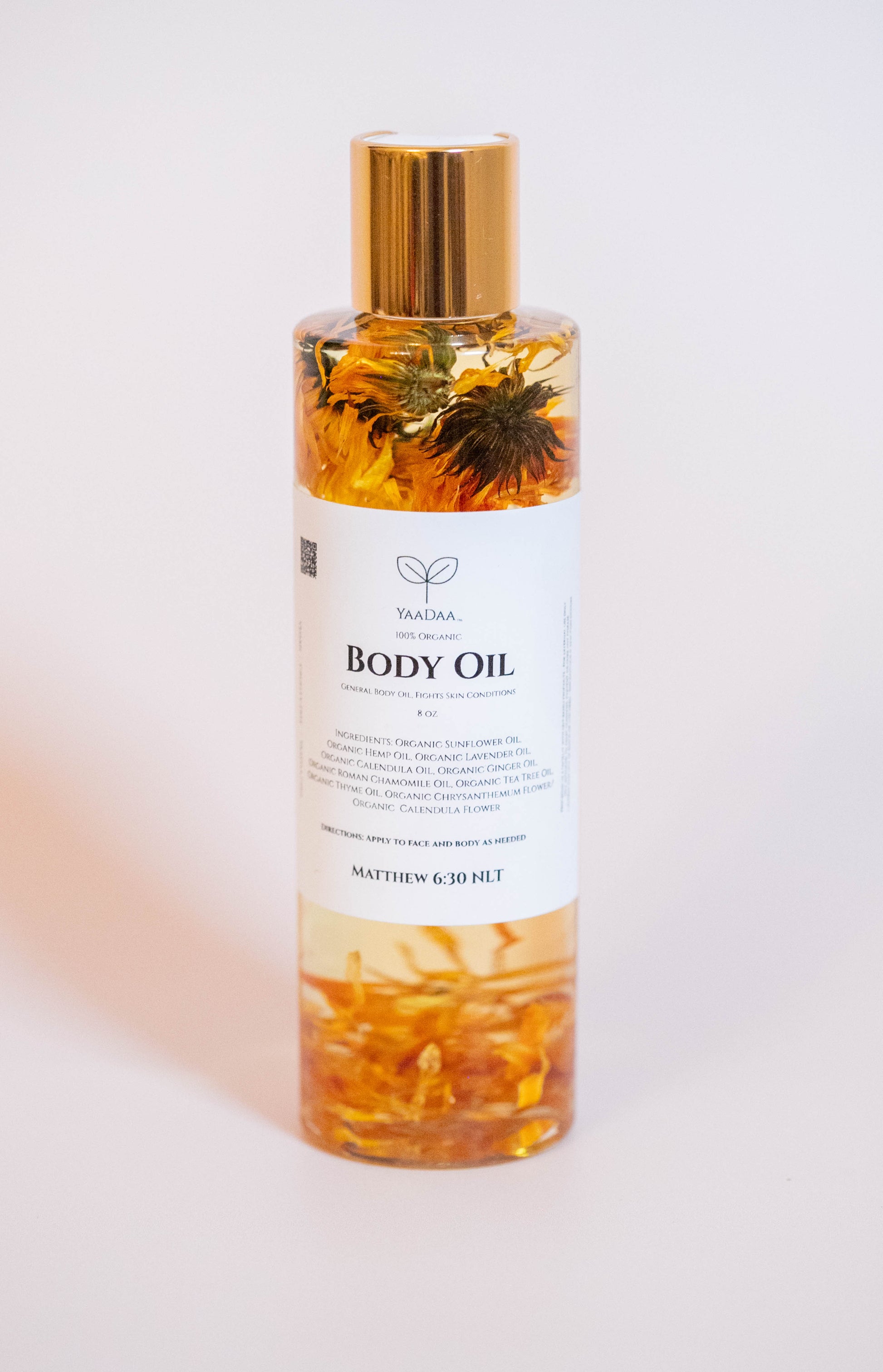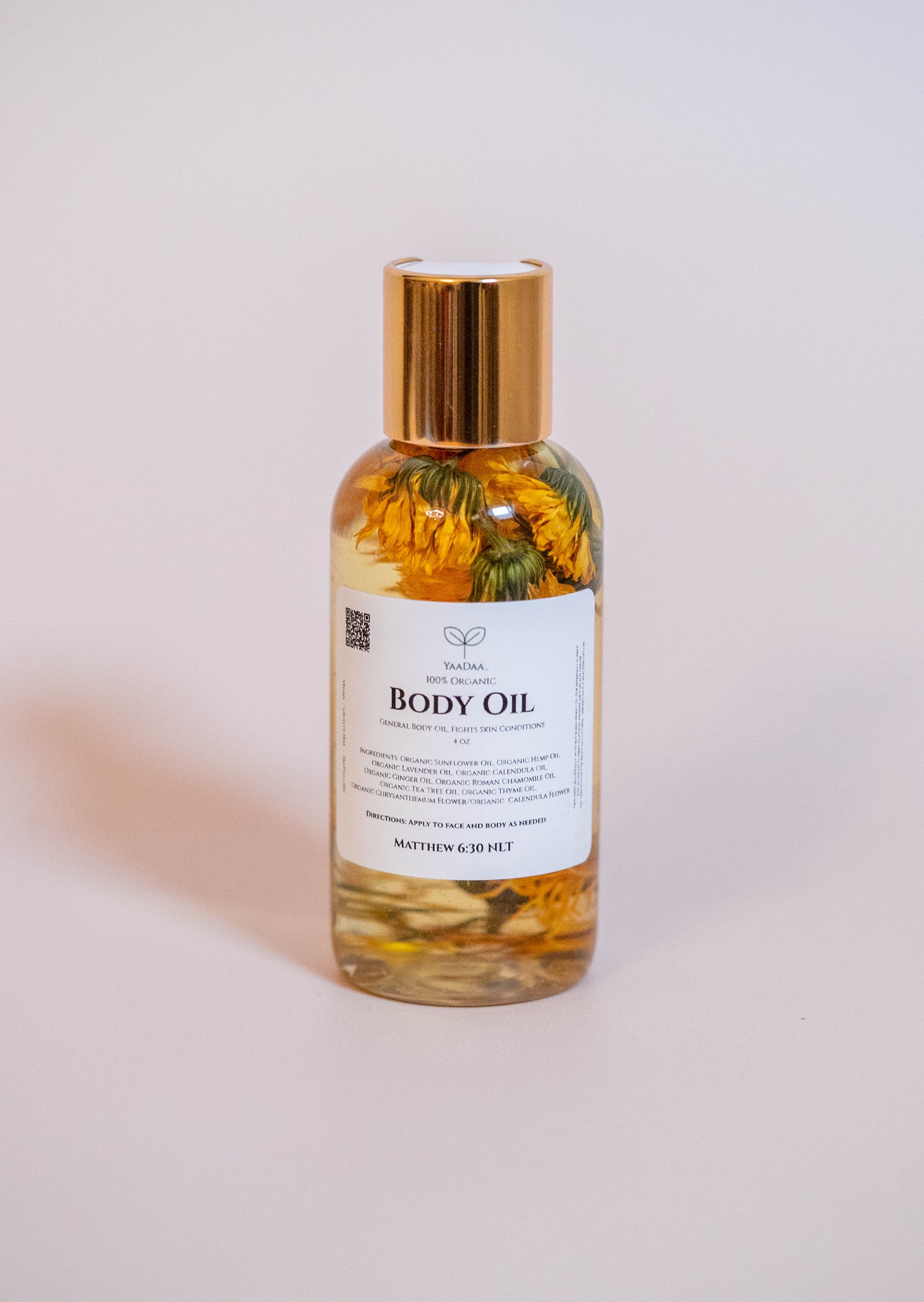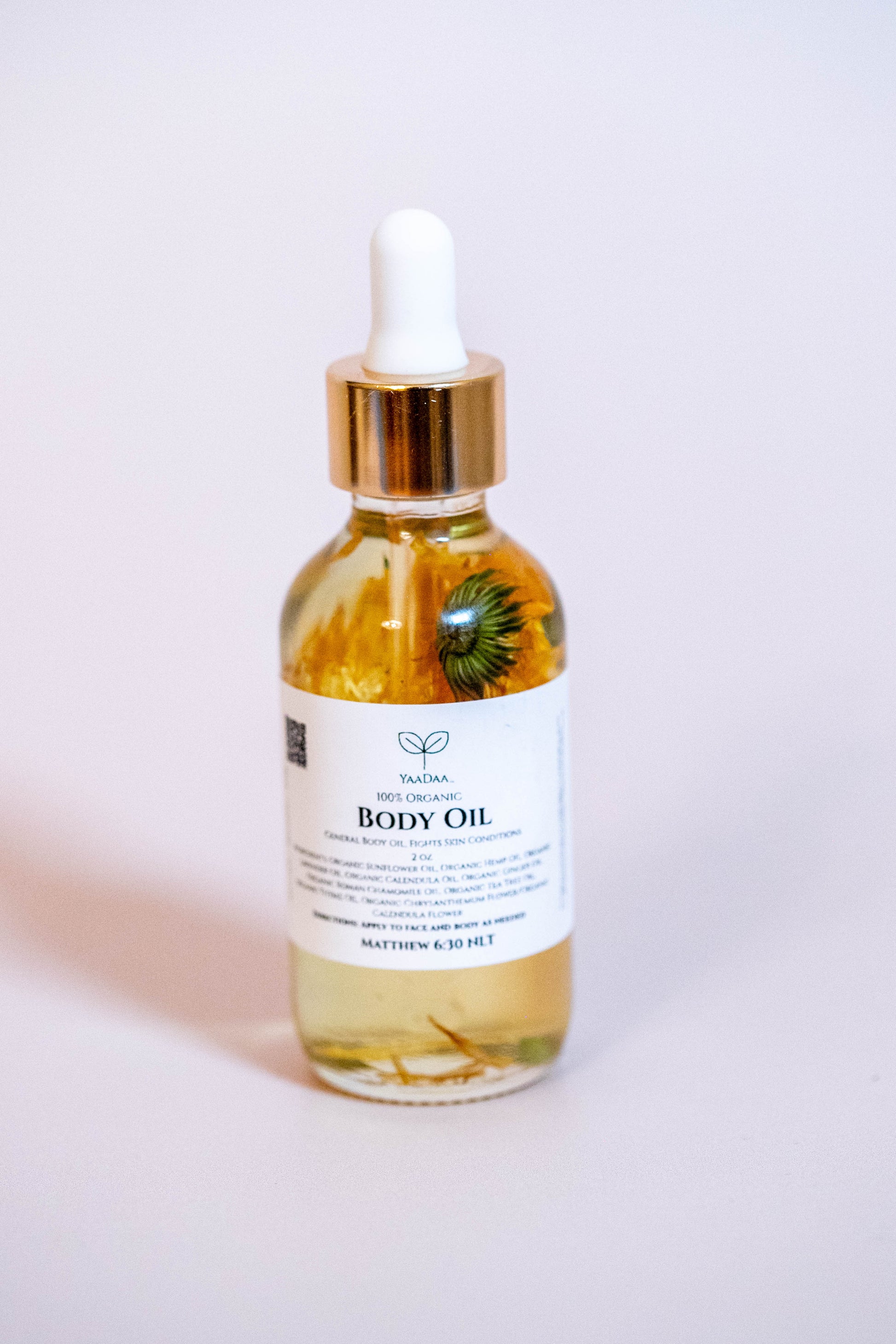 This oil can be used on the entire body, including the face. It does not clog pores, due to the antimicrobial and noncomedogenic properties found in the various oils infused within this product. This oil will help your body fight dry skin and skin conditions (like eczema and dermatitis), while retaining its most natural resource, water.