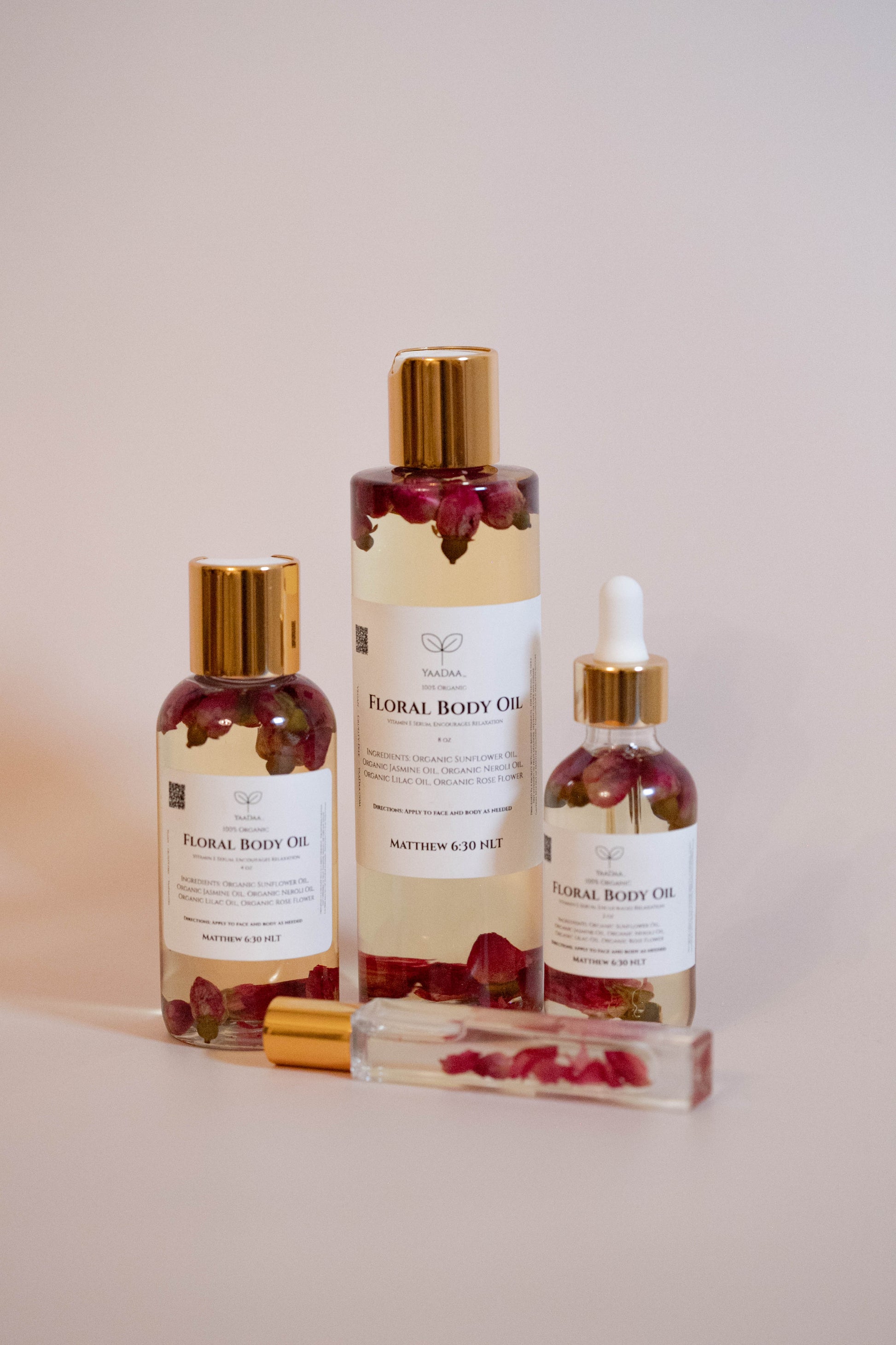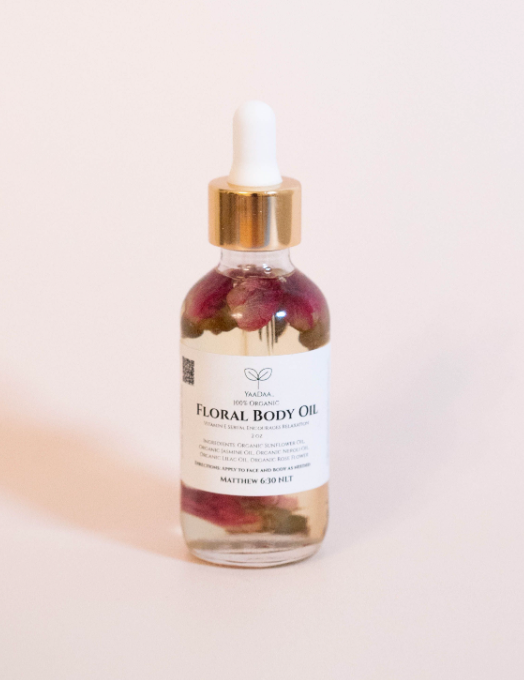Floral Body Oil immerses your skin in a delightful fresh, floral scent while delivering nourishing hydration.This luxurious blend promotes stress relief, skin rejuvenation and cell rejuvenation for healthy, glowing skin, making it perfect for soothing dry, irritated skin, tired skin.